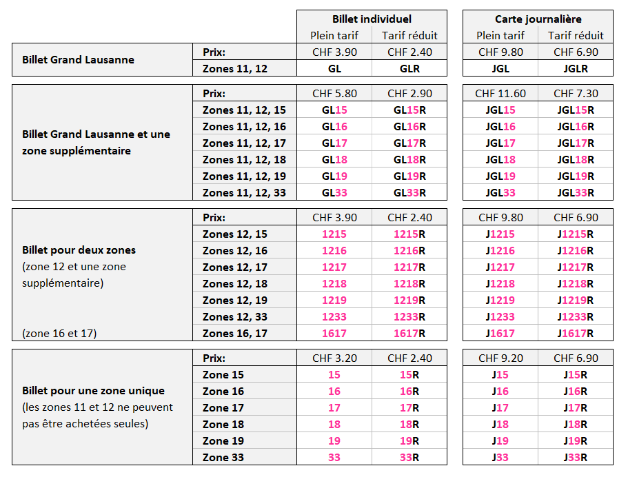 - Les billets 1 et 2 zones (yc GL) sont valables 1 heure