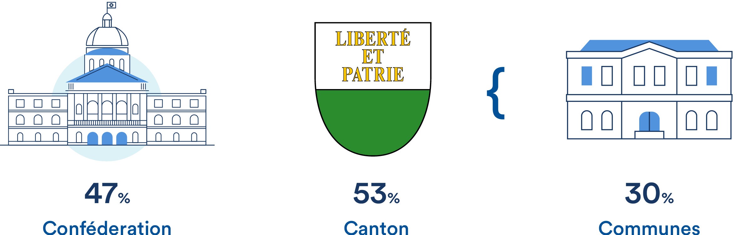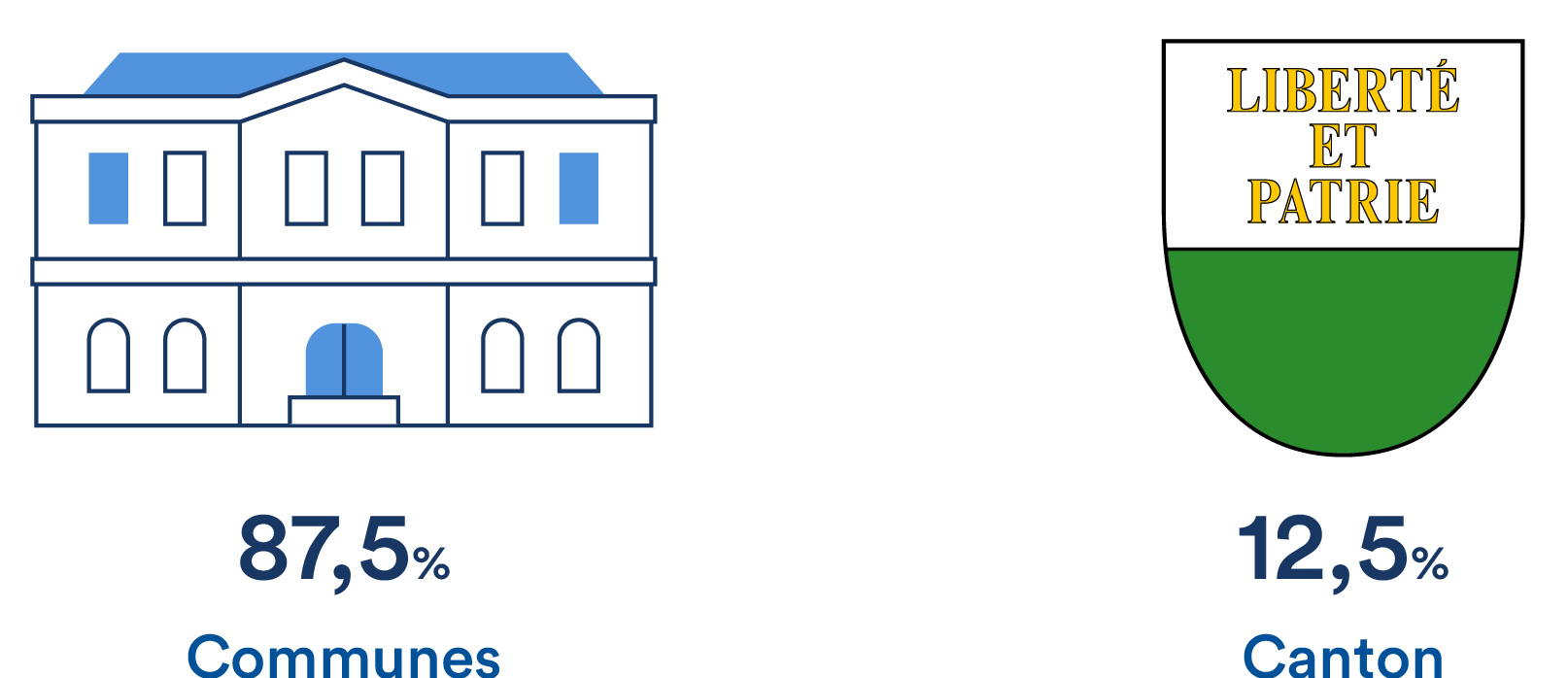 Les charges liées au trafic régional voyageur (TRV) sont partagées entre la Confédération (47%) et le Canton (53%), dont 30% de la part du financement cantonal est assumé par les communes. La répartition du financement entre les communes d’une région de transports publics est effectuée sur la base de la population et du coefficient de desserte (article 15 LMTP).
