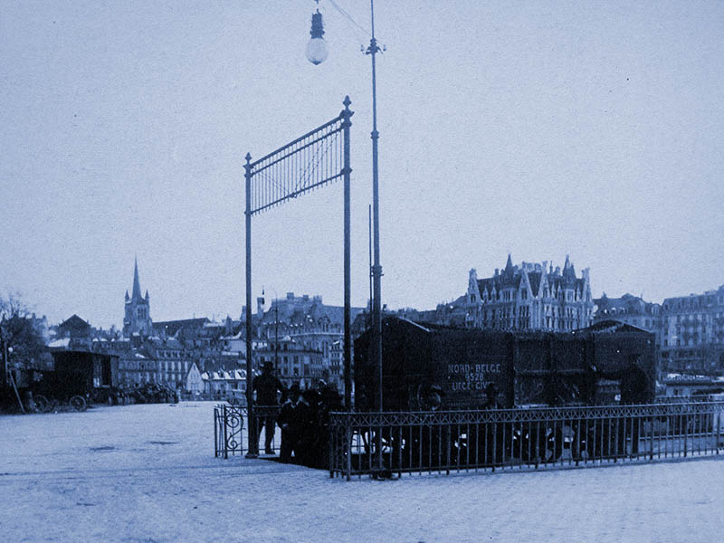 La vallée du Flon est une zone d’entrepôts et de marchandises qu’exploite l’entreprise ferroviaire, industrielle et immobilière Lausanne-Ouchy (L-O). En 1897, elle a inauguré le premier funiculaire d’Europe pour relier le port d’Ouchy et la gare de Lausanne ; les usagers la nomment « La Ficelle ». Une seconde ligne s’étire aussi jusqu’au quartier du Flon devenu marchand. D’ailleurs, l’entreprise ferroviaire cherche à rationaliser les transports de marchandises qu’elle effectue entre la gare de Lausanne et la ligne de tramway passant à Bel-Air juste au-dessus de ses entrepôts du Flon. En 1900, la Compagnie L-O fait construire un ascenseur hydraulique géant permettant de monter et descendre des wagons. La voie de sortie de l’ascenseur est raccordée au réseau des tramways, permettant ainsi un transbordement simplifié des marchandises.