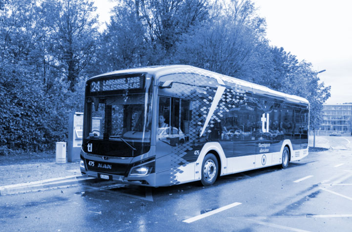 Les premiers autobus électriques (e-bus) fonctionnant sans aucune infrastructure aérienne ont été mis en service sur notre réseau. Ils roulent sur la ligne 24, dite « olympique », qui longe le bord du lac. Ceux-ci fonctionnent avec des batteries, qui sont rechargées au dépôt de Perrelet.