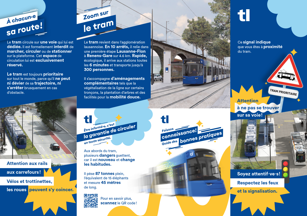 Le tram fait son grand retour dans l’agglomération de l’Ouest lausannois après 60 ans d’absence. Il amène performance avec ses 15 minutes de trajet entre Renens-Gare et Lausanne-Flon et confort avec ses 300 places. Il incarne la durabilité avec ses nouvelles technologies, son alimentation électrique continue à 750 volts et son environnement plus végétalisé.